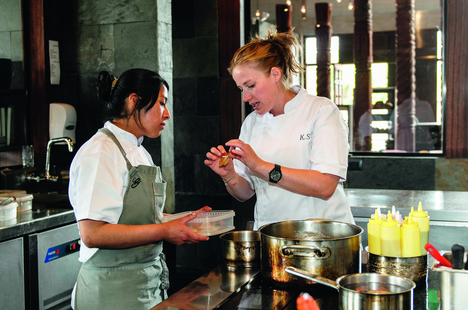 -Du går ikke opp til eksamen, når du spiser på Gustu, sier Kamilla. –Så er det heller ikke pølse i brød vi serverer. Jeg har stor respekt for et kjøkken hvor maten anrettes med pinsett. Men det er også noe romantisk ved det å ta en panne, tilberede maten og så bare legge den over på en tallerken. I den forstand er nok mitt kjøkken mer rock’n roll, påpeker hun.
