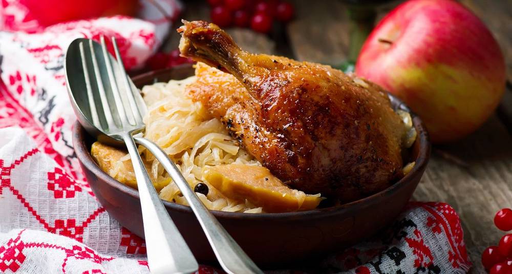 Skrell løkene, finhakk dem og surr dem gylne og klare i andefett i en tykkbunnet gryte, som er stor nok til at det blir plass til kålen. Skrell eplet, skjær det i små terninger og bland disse i løken sammen med pepperkorn, enerbær og laurbærblad. Legg kålen oppå og tilsett 1 dl kokende vann og 2 dl hvitvin. Legg lokk på gryten og la kålen stå og putre ca 30 minutter. Ta så lokket av, skru varmen opp og kok all væske helt inn.