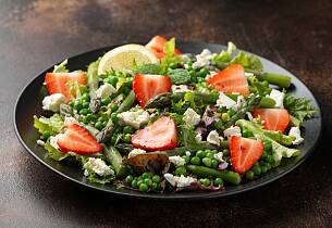 Her er det veldig mye godt i salaten og ikke bære grønt. Jordbær å spekeskinke passer veldig godt i.