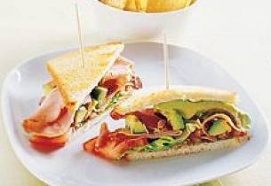 Legg kyllingkjøtt mellom brødskivene med sennep, karrimajones, sylteagurker og tomater så har du en deilig sandwich.